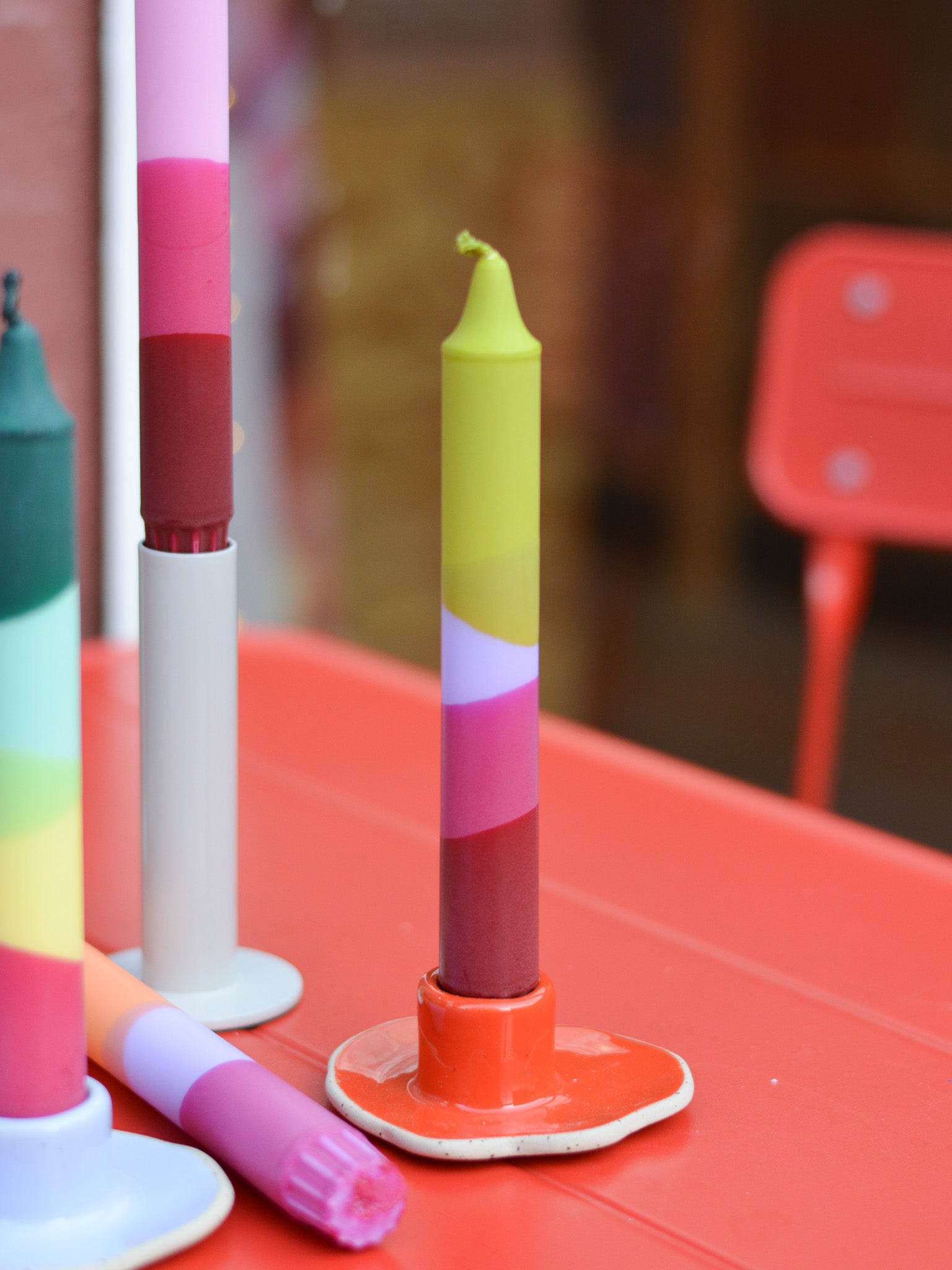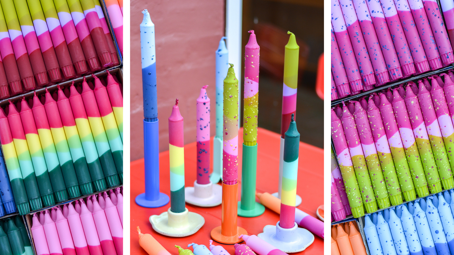 Welcome to our colorful candle universe! At Nordtrice we specialize in manufacturing colorful taper candles and scented candles that bring a splash and joy of colour into every apartment and space!
