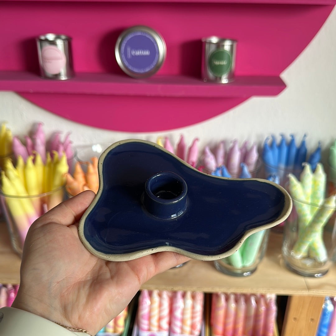 Ceramic candle holder in a dark blue colour. Perfectly complements our taper candles, but can also be used as a jewellery holder.