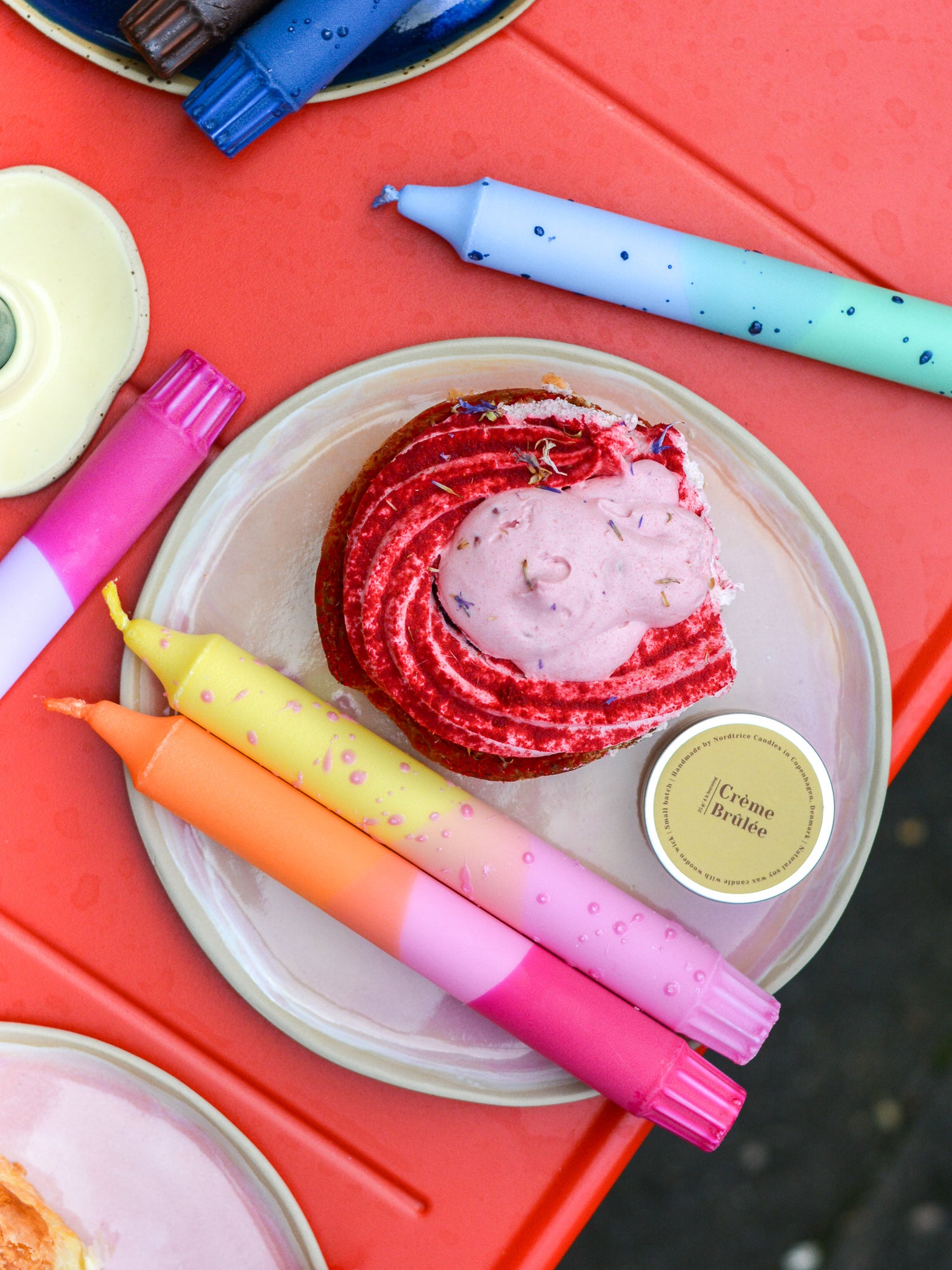 Candles are available in sets of 5, 10, 15, or 20 pieces in a single color, with the option to mix and match with other colors from the collection.