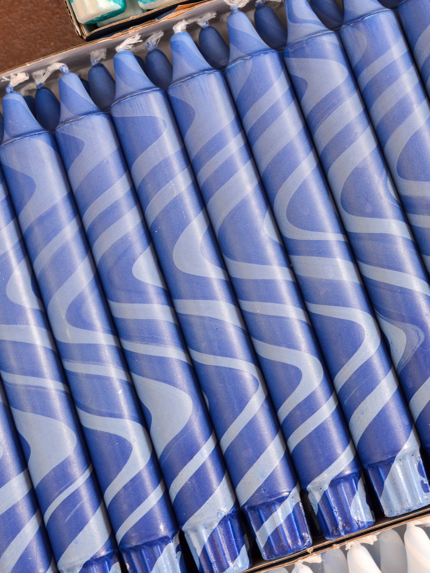 Candles are available in sets of 5, 10, 15, or 20 pieces in a single color, with the option to mix and match with other colors from the collection.