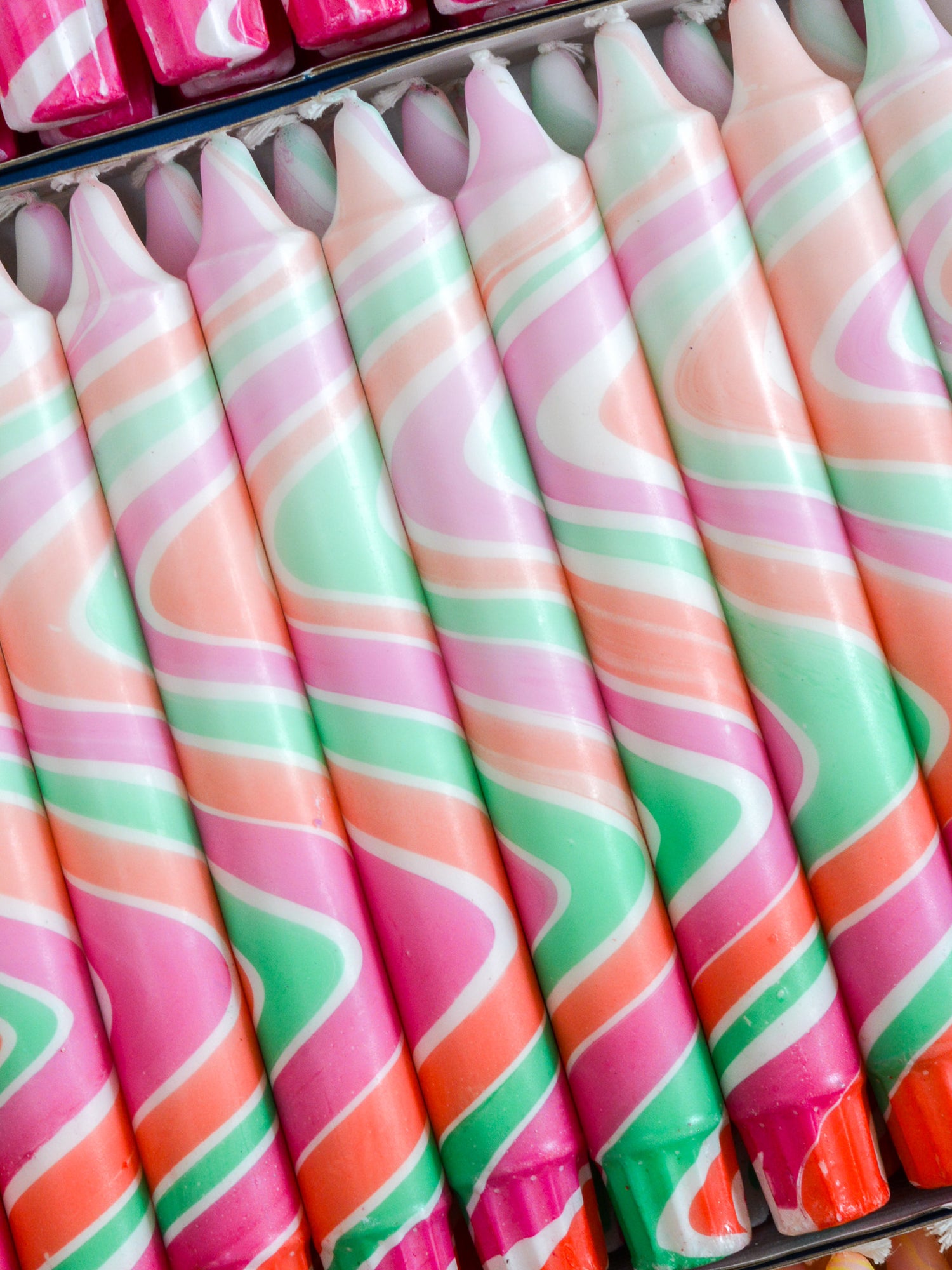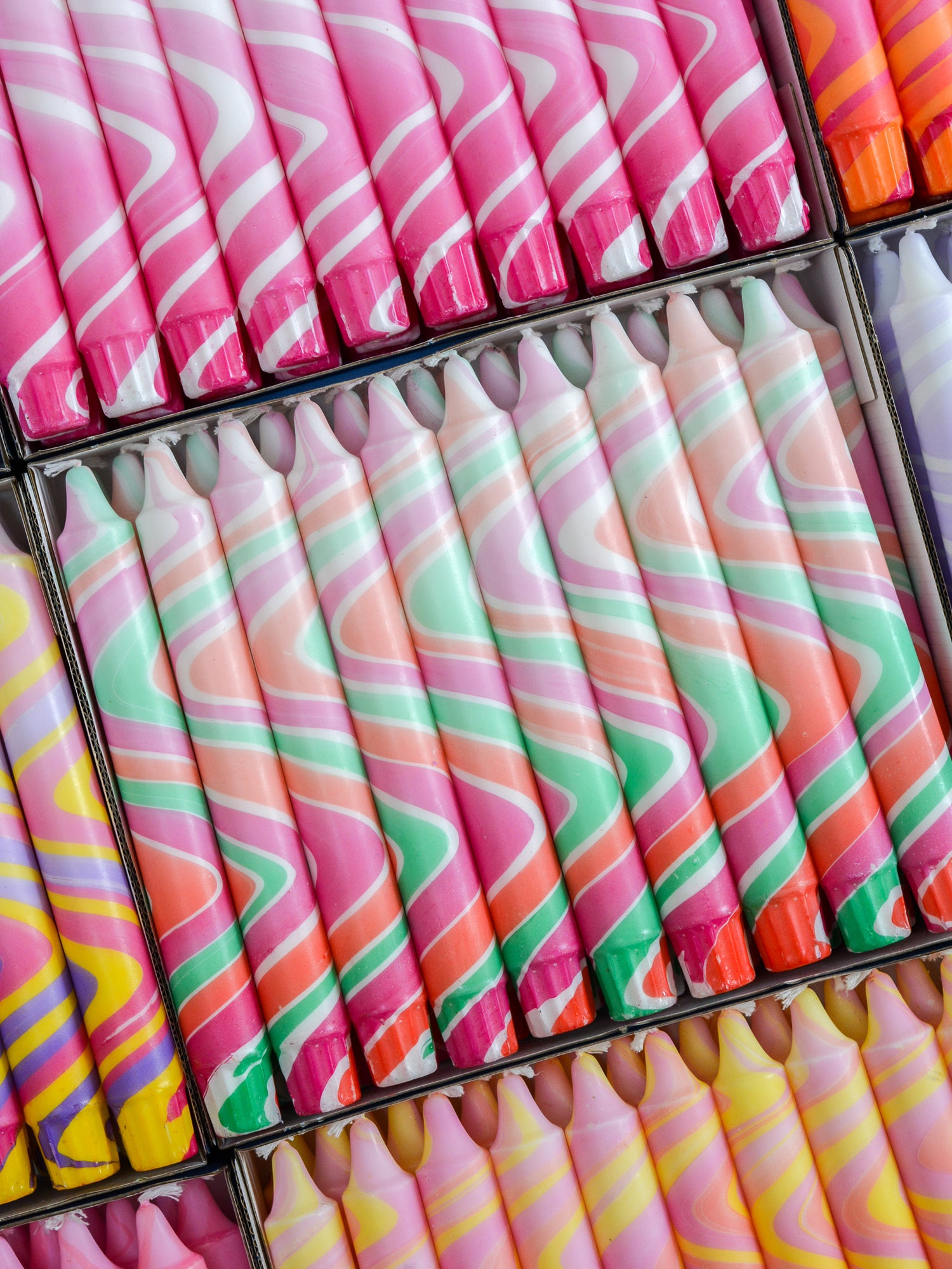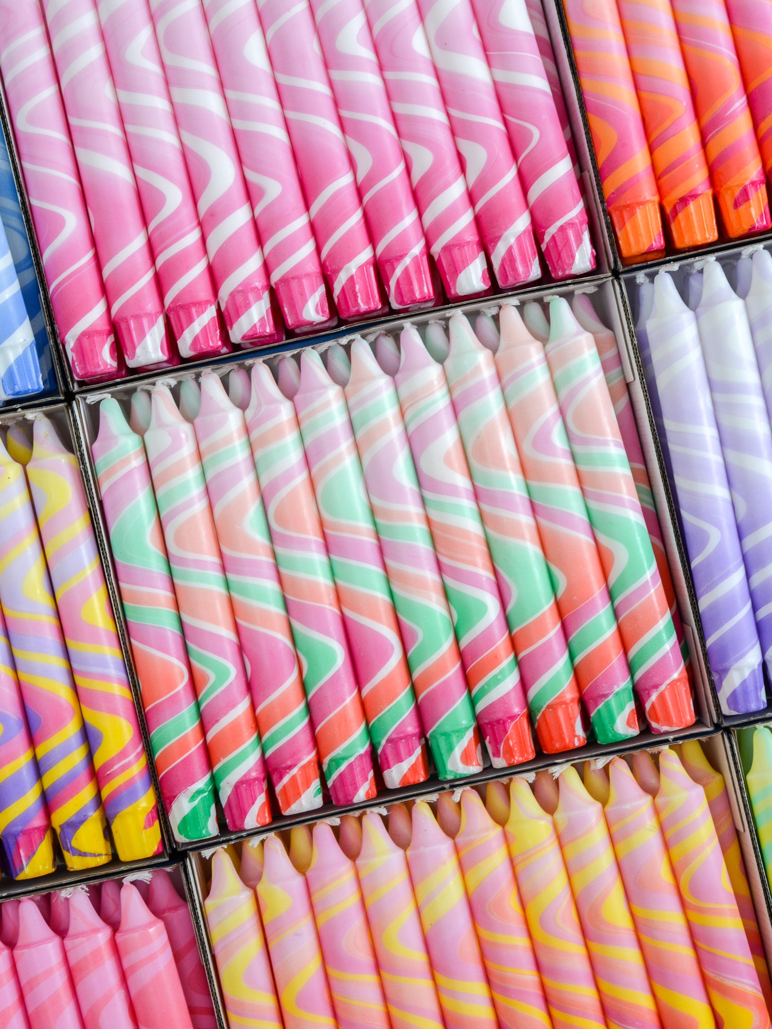 Candles are available in sets of 5, 10, 15, or 20 pieces in a single color, with the option to mix and match with other colors from the collection.