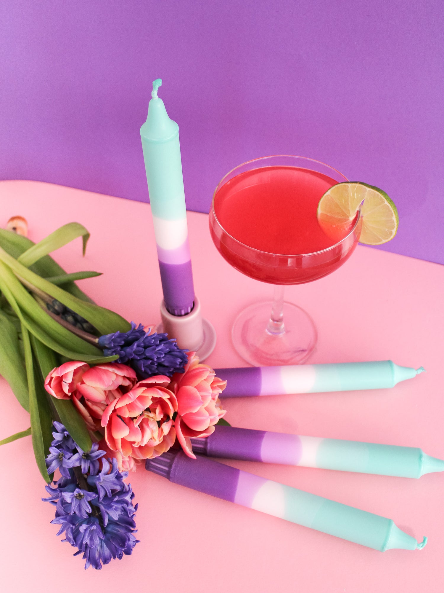A set of handmade candles in light green & purple colours carefully dipped and decorated with natural stearin wax. Perfect for the matcha lovers!