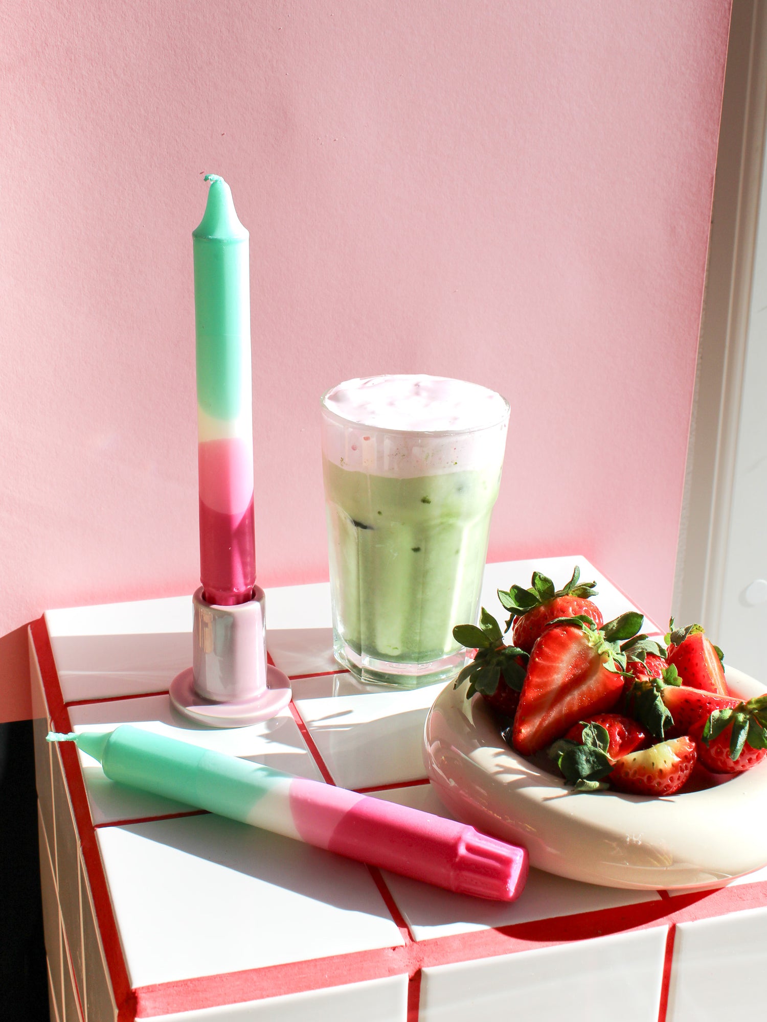 A set of handmade candles in light green & pink colours carefully dipped and decorated with natural stearin wax. Perfect for the matcha lovers!