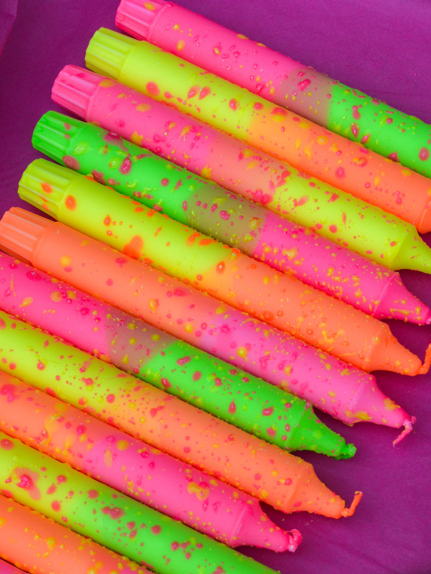 A set of ten handmade candles in different colours, carefully dipped and decorated with natural stearin wax.